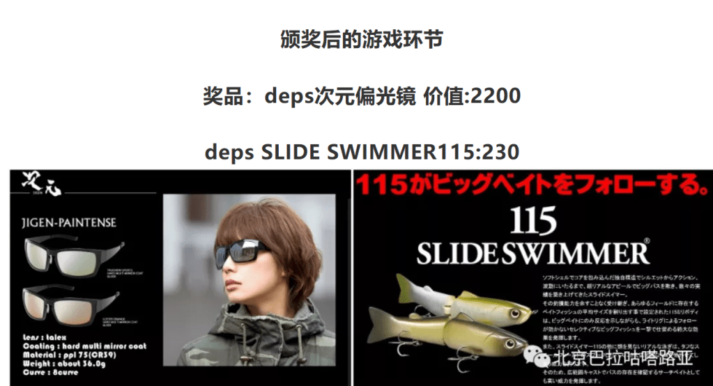本次比赛邀请是deps公司职业釣手top staff前田 纯先生,共同来参与本次活动与大家互动,前田 纯在世界记录钓鲈鱼的琵琶湖做了20多年的导钓。现在也活跃在第一线。凭着连续不断的大鲈鱼钓获,有很多钓鲈爱好者不断的预约他来导游。现在也很难预约到的琵琶湖顶级职业导游。
